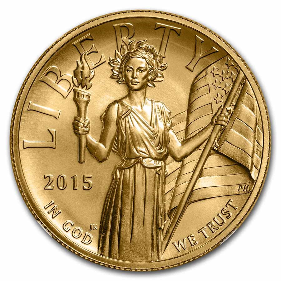 This 2015-W High Relief American Liberty Gold Coin is graded a perfect MS-70 by the Numismatic Guaranty Company, certifying flawless condition and superior quality. Struck at the West Point Mint, this modern gold issue is highly sought after for its striking design and limited production.